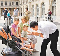 郭富城(右)在巴黎童心未泯的猛逗小貝比。 圖/東方日報提供 |