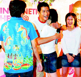 郭富城(中)與數百名來自各地的歌迷一起慶祝生日。 記者葉蕙蘭/攝影 |