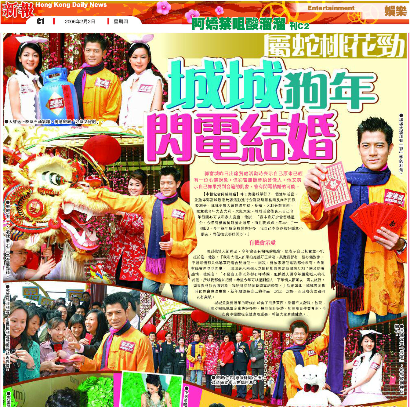 郭富城昨日出席賀歲活動時表示自己原來已經有一位心儀對象,但卻苦無機會約會佳人。他又表示自己如果找到合適的對象,會有閃電結婚的可能。