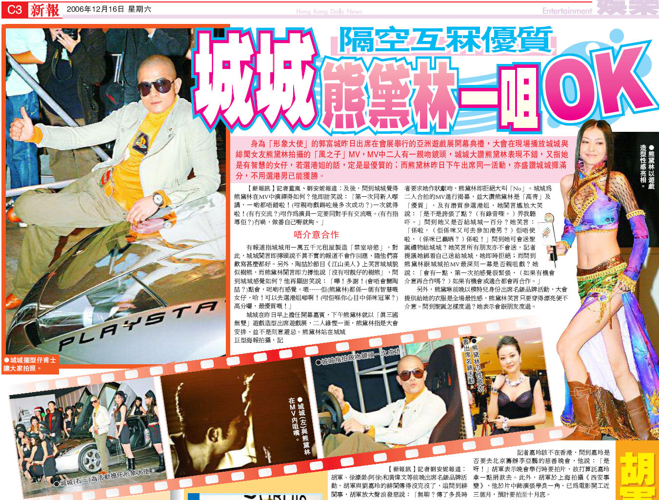 城城在昨日早上擔任開幕嘉賓,下午熊黛林就以「真三國無雙」遊戲造型出席遊戲展,二人緣慳一面,熊黛林指是大會安排,並不是刻意避忌。熊黛林站在城城巨型海報拍攝,記者要求她作狀獻吻,熊黛林即拒絕大叫「No」。城城為二人合拍的MV進行揭幕,並大讚熊黛林是「高青」及「優質」,及有潛質參選港姐,她聞言尷尬大笑說﹕「是不是誇張了點﹖(有錄音謘C)畀我聽鵅C」問到她又是否給城城一百分﹖她笑言﹕「係啦,(佢係咪又可去參加港男﹖)佢唔使啦,(係咪已贏晒﹖)係啦﹗」問到她可會送聖誕禮物給城城﹖她笑言所有朋友亦不會送,記者提議她綁茼菑v送給城城,她即時拒絕﹔而問到熊黛林跟城城拍MV最深刻一幕是否親咀戲﹖她說﹕「會有一點,第一次拍感覺很緊張,(如果有機會介意再合作嗎﹖)如果有機會或適合都會再合作。」