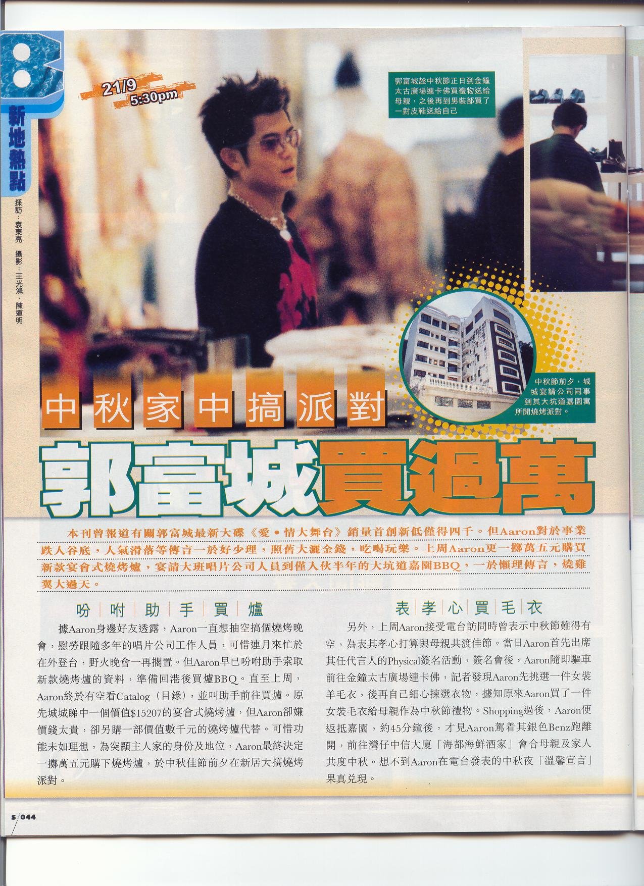 Sep 12 (a) - ³¢ ´I «° ³Q ÅA ¤p ºÖ ¬P (SP) (b) - «° «° ¤W ®ü °Å ºù °_ «¡ °Ê (TKP) (c) - «° «° ¤W ®ü °Å ºù ¼VžR (WWP) (d) - «° «° ¤W ®ü °Å ºù¡@ºq °g ¹G Ãz «n ¨Ê ¸ô (ST) / (CCN) (e) - Aaron Kwok's arrival in Kuala Lumpur RealVideo | MS-WMP (STAR)