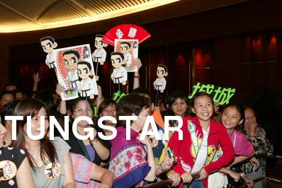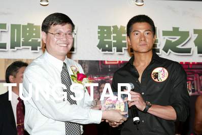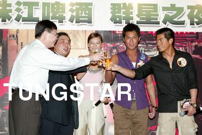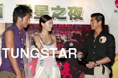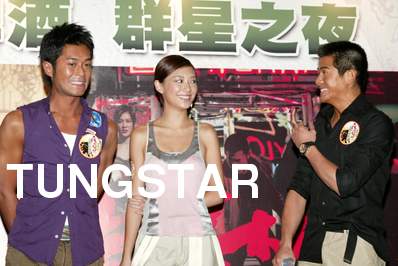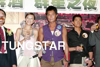柔道龍虎榜群星之夜 藝人:古天樂、郭富城、應采兒、梁家輝、姚樂兒 地點:灣仔,會展 時間:2004-07-07 古天樂、郭富城、應采兒、梁家輝、姚樂兒等一班《柔道龍虎榜》的演員,連日來日以繼夜為電影出席大小不同的宣傳活動,真係買衫也買窮,特是女藝人更花費不少來轉換形像,務求帶出一點新鮮感。采兒繼前晚以成熟打扮出席首映禮後,昨日「群星之夜」則換上青春一點的粉紅小背心襯金色束腳褲,雖然不算密實,但由於多位到場的女嘉賓均以低胸吊帶裙亮相,被搶去不少風頭。 Credit Line: Tungstar / Simon |