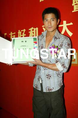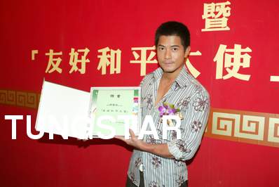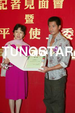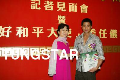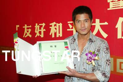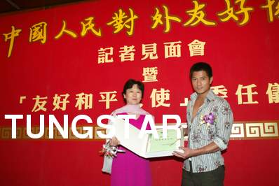 友好和平大使委任 藝人:郭富城 地點:尖東日航酒店安會東廳 時間:2004-08-10 中國人民對外友好協會為推動友好和平訊息讓香港市民了解協會的性質,協會更委任紅星郭富城為「友好和平大使」,以促進內地與香港之間的相互理解和文化交流,即場送贈紀念品 Credit Line: Tungstar / yui |