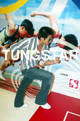 郭富城新碟舉行簽名會,吸引了大批城城的FANS到來.奧運己經開始,跳舞很出名的城城看見場內放了個在體操的鞍馬,馬上上鞍玩了幾個花式.立即引來女FANS的尖叫聲.