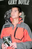[9月21日香港讯]下午三时,又一城,郭富城出席美国名牌Columbia活动,他更担任「Columbia世界坚毅精神」大使,希望他能带出宣扬热爱冒险旅游、热心公益及坚毅不屈的精神及理念,席上城城更获该品牌创办人Mrs.Gertrude Boyle送赠一本以她游歷世界为题的书籍。城城坦言一直以来都很喜欢翻阅世界各地成功人士的有关书籍,当中最喜欢就是毛主席的传记。Aaron很有自信地说:「我一向都很欣赏这个名牌的作风,因为它有著积极的希望。」 另外,大会昨日特别安排在九龙塘一商场内的溜冰场举行,一班模特儿包括徐子淇、Rosemary、Ana.R等穿溜冰鞋一边溜冰一边「行」catwalk。 子淇称小时一次溜冰不慎跌倒,从此存有阴影,因此表演时亦担心会滑倒,幸好最终顺利完成,而她与男友亦没有试过一齐溜冰,相信都不会了。